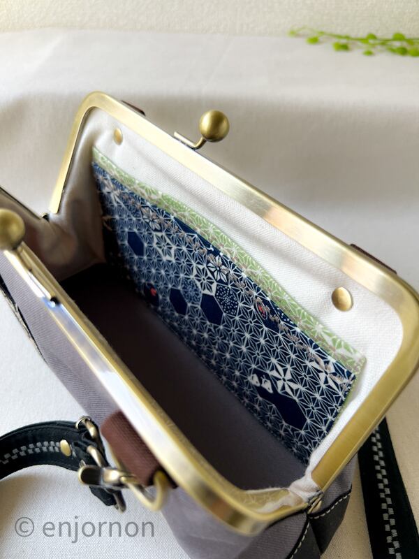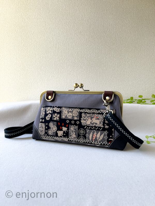 【受注制作】がま口お財布バッグ 和調ブラック×グレー