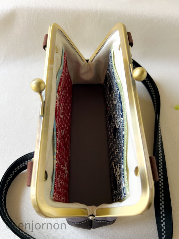 内ポケットにお札とカードを入れて、小銭はがま口の小銭入れをin!スマホも入るお財布バッグです(^^♪