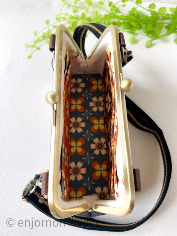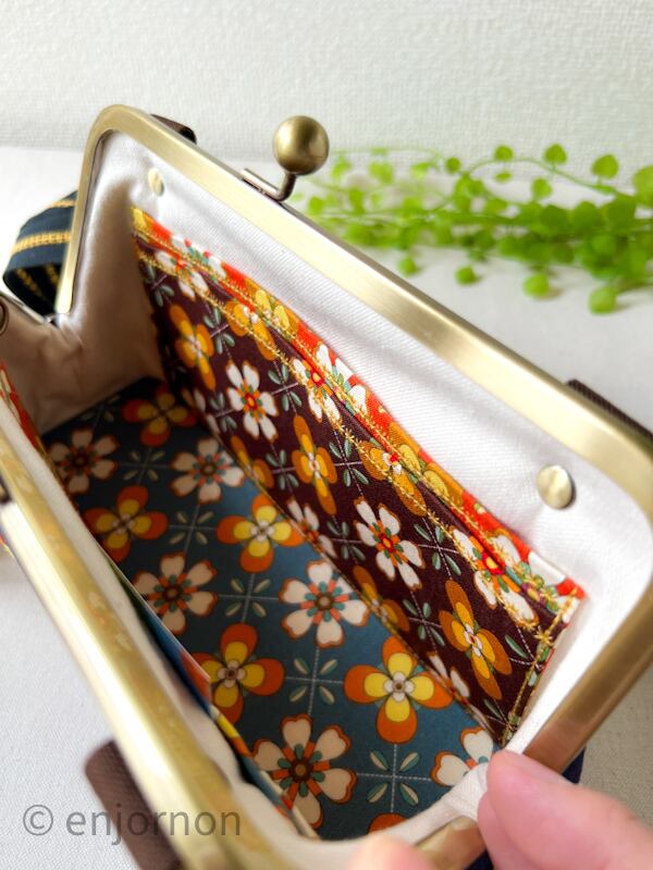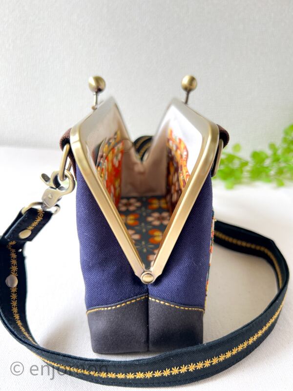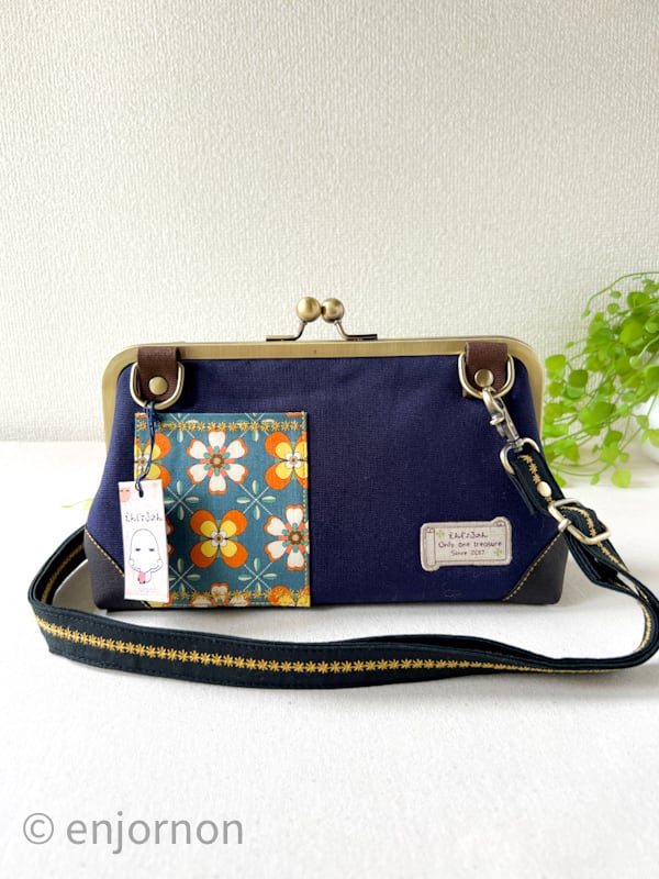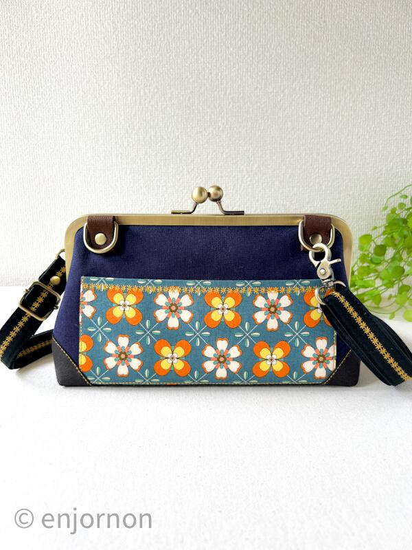 【受注制作】がま口お財布バッグ レトロフラワー×ネイビー
