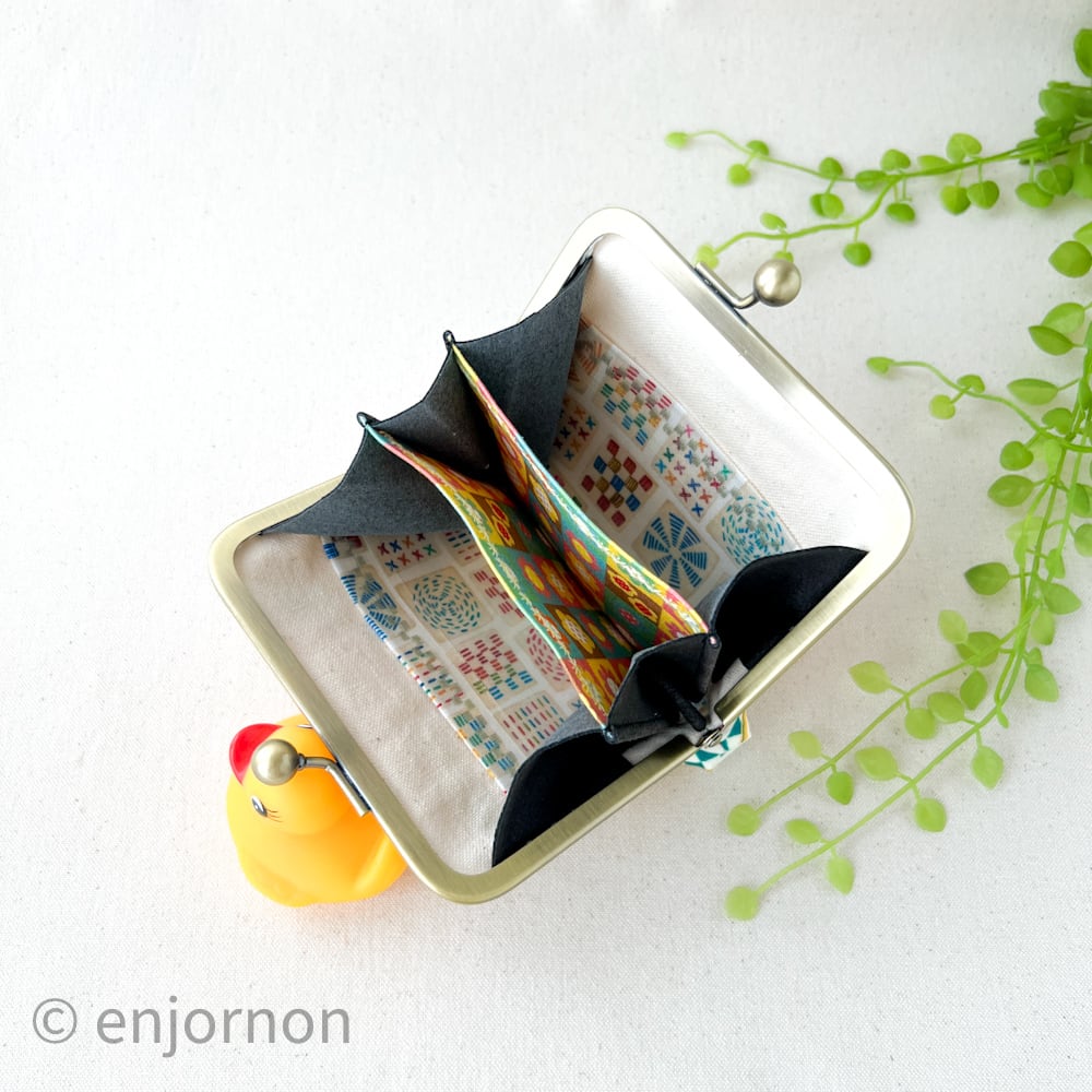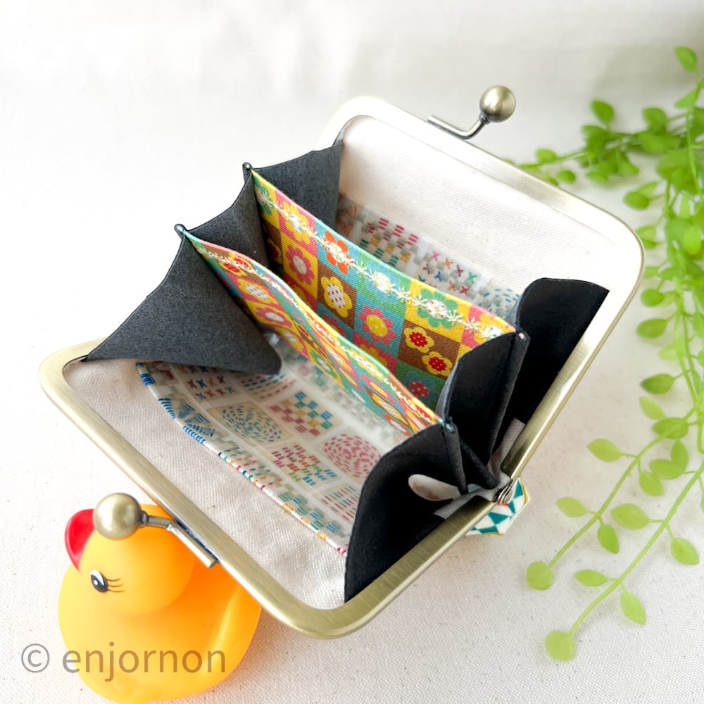 そんな事を考えながら、「えんじょるのんのお財布はコレだ!」というがま口を作りたいと試作を繰り返して完成したのが、このほどよいお財布です。