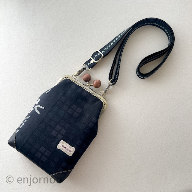 木玉が可愛い縫いつけ口金のスマホショルダー