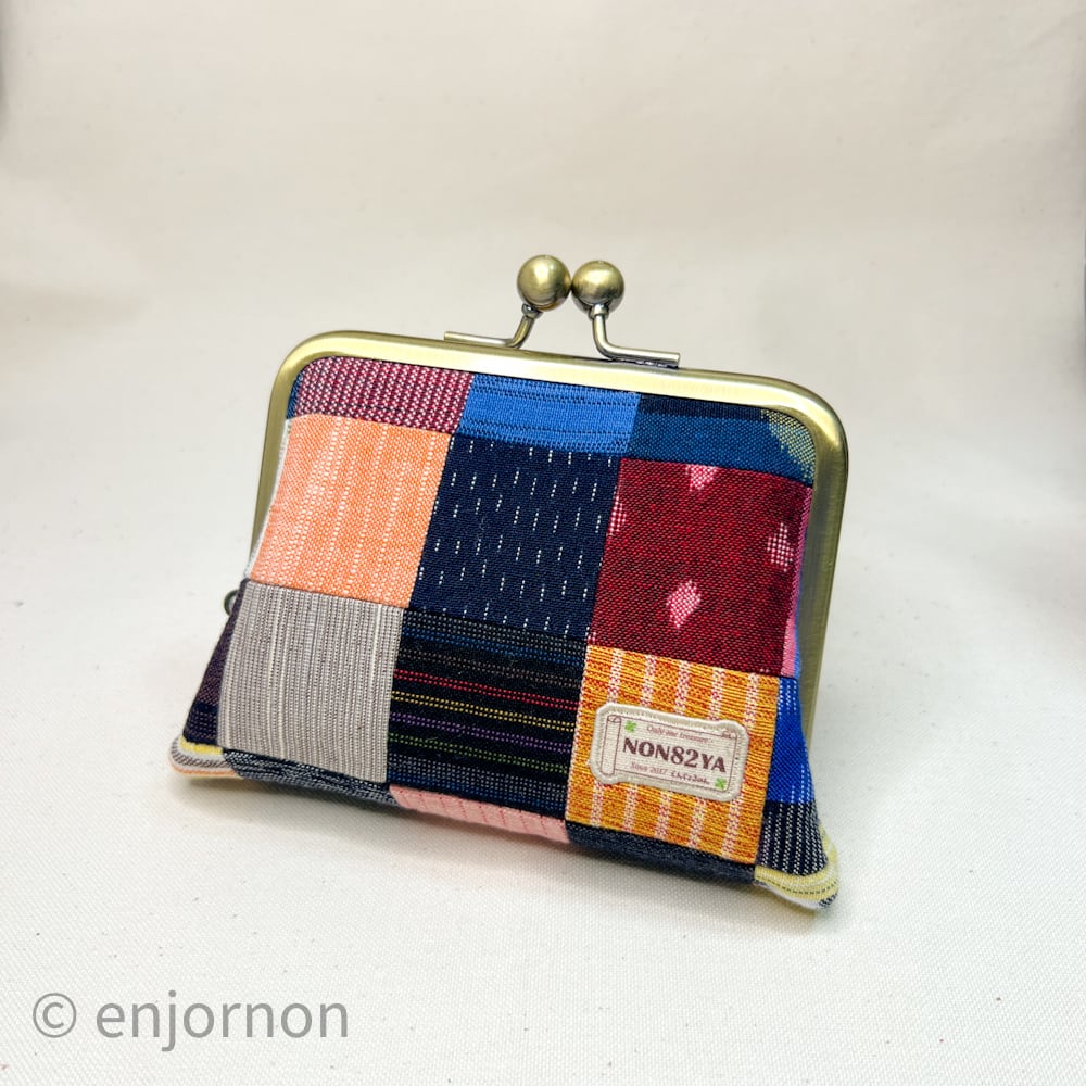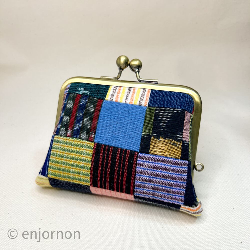 沢山の柄の久留米絣生地でパッチワークしました。貴重な生地から出来たがま口財布を