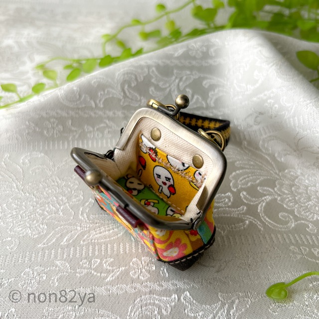 中を開けるとゆーれいさんが陣取っている、ちょっと変化球ながま口バッグです。