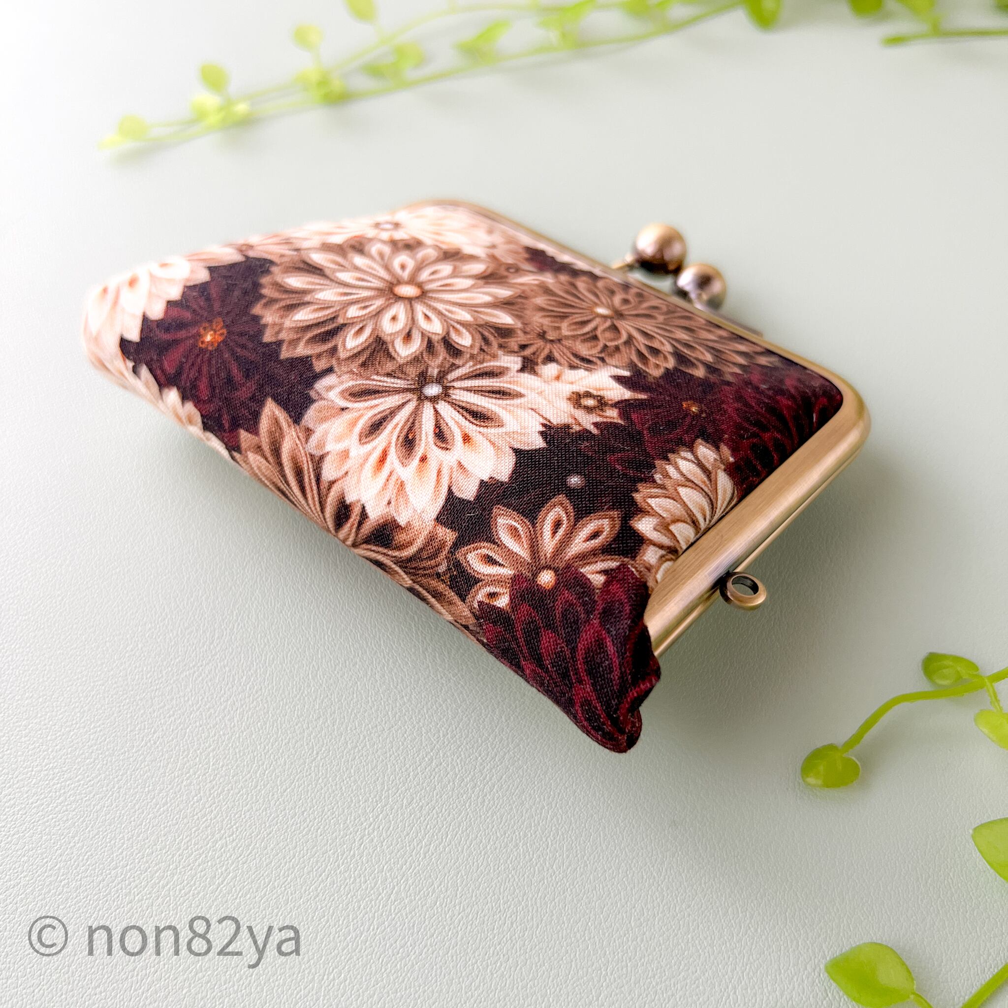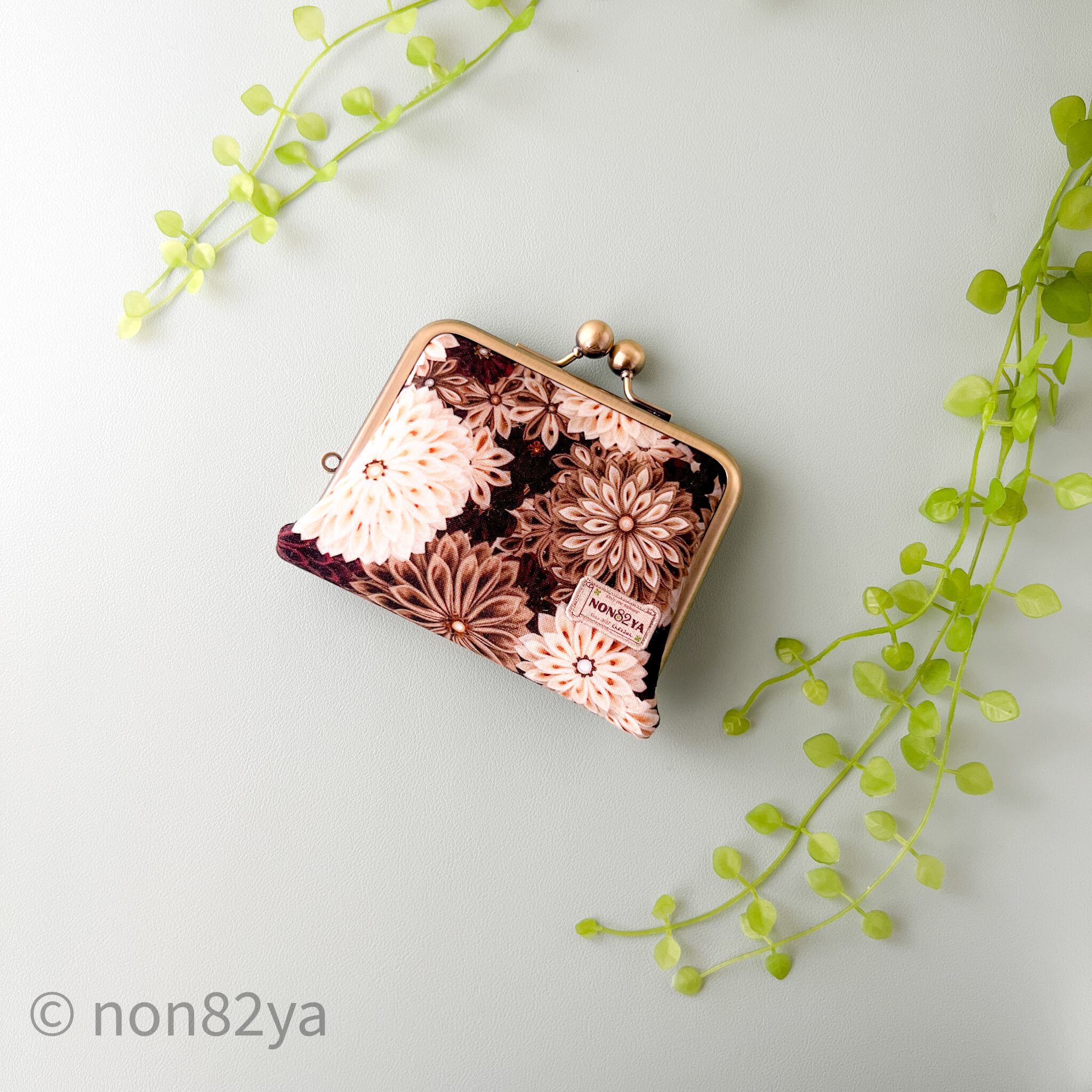 布をつまんで作られる美しいお花を一面に並べて作られた花群生紋様をがま口に仕立てました。