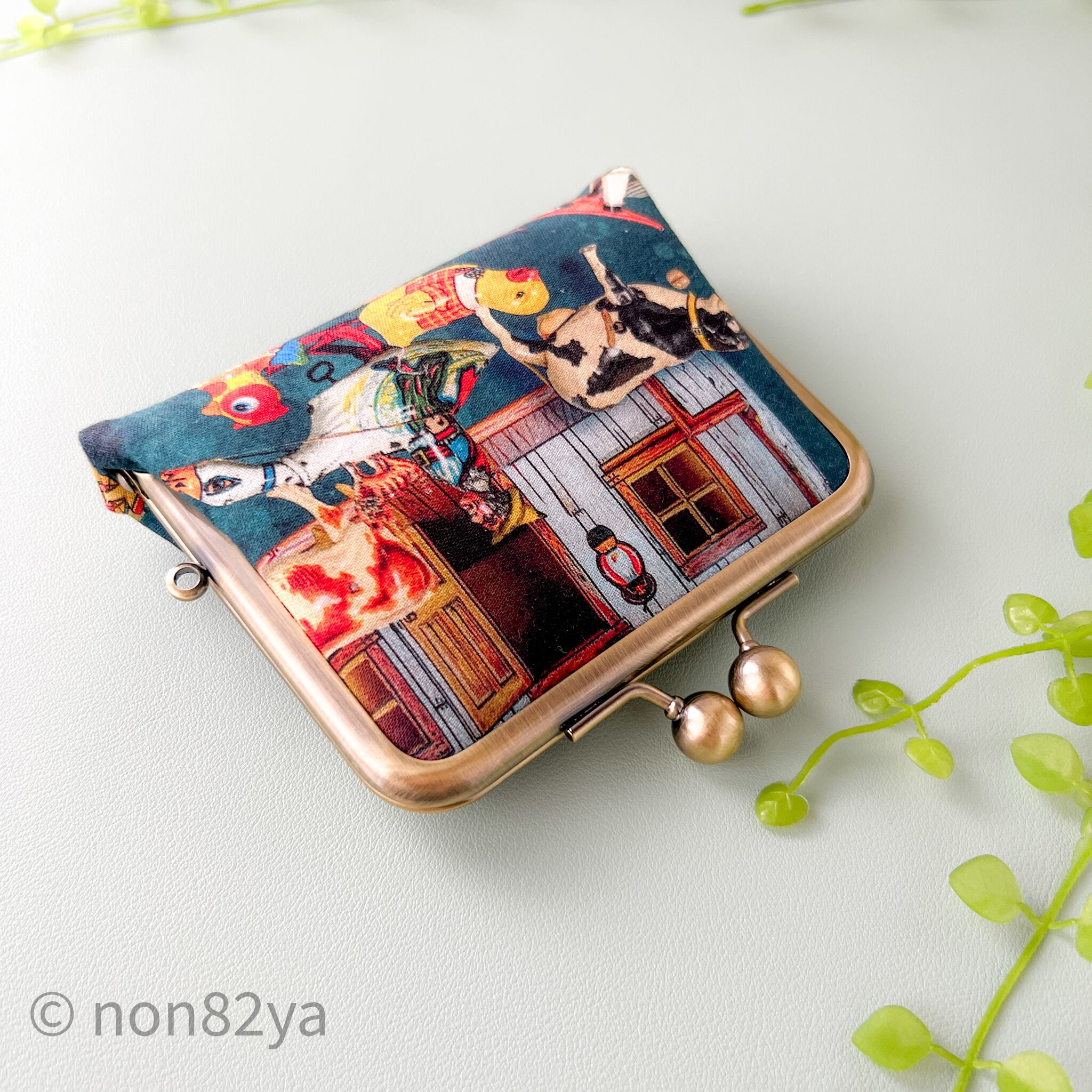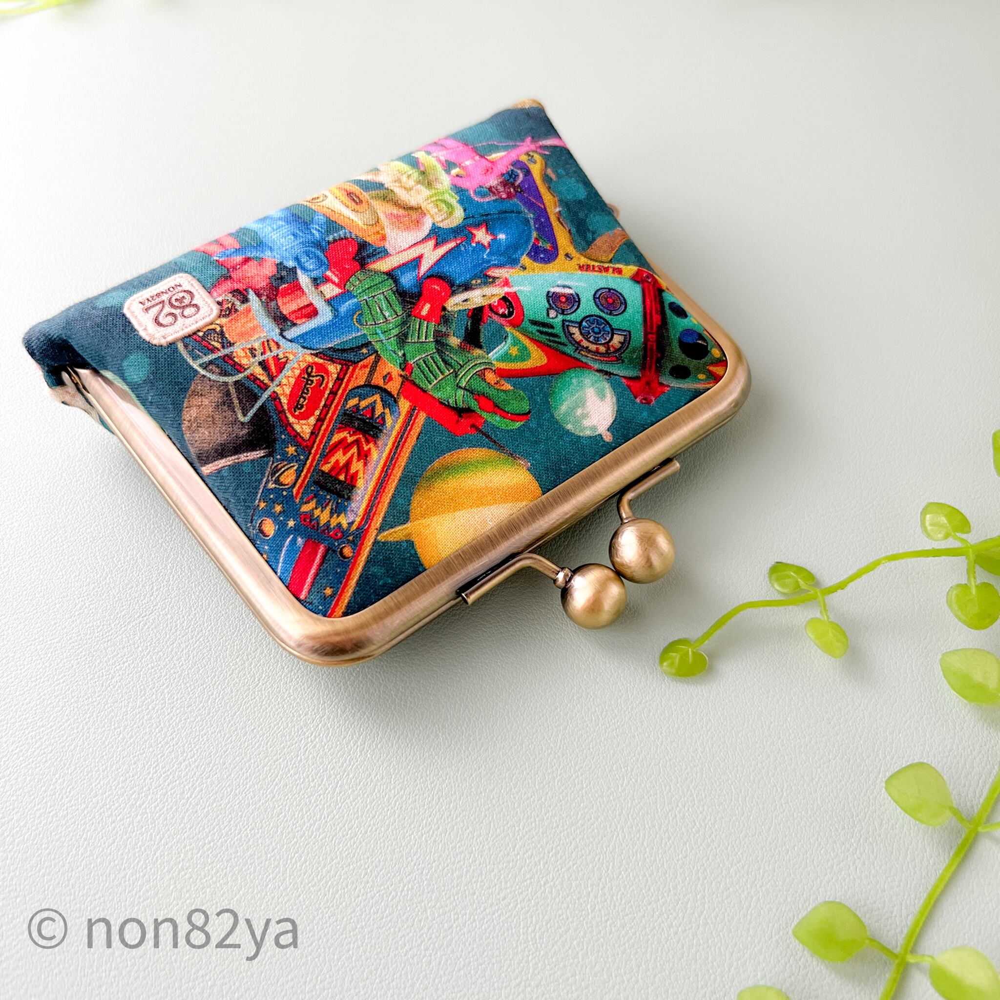 ブリキのおもちゃ達やヒーローたちが集うがま口財布