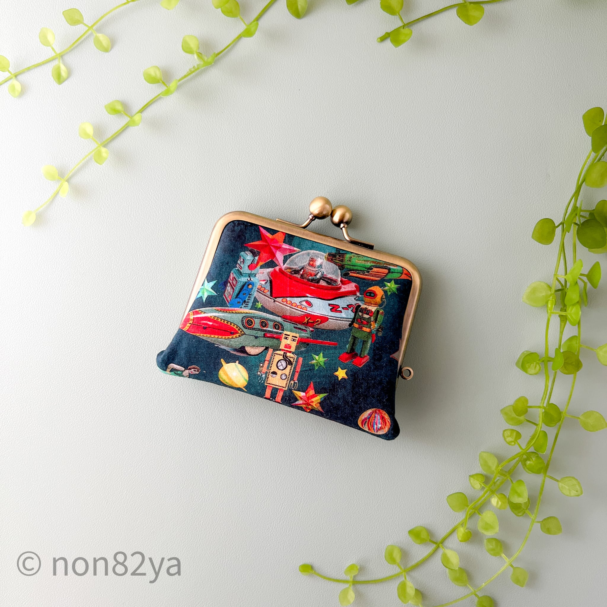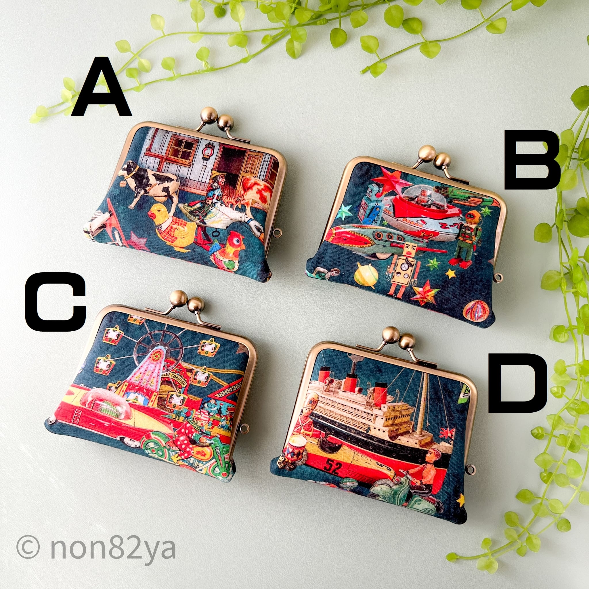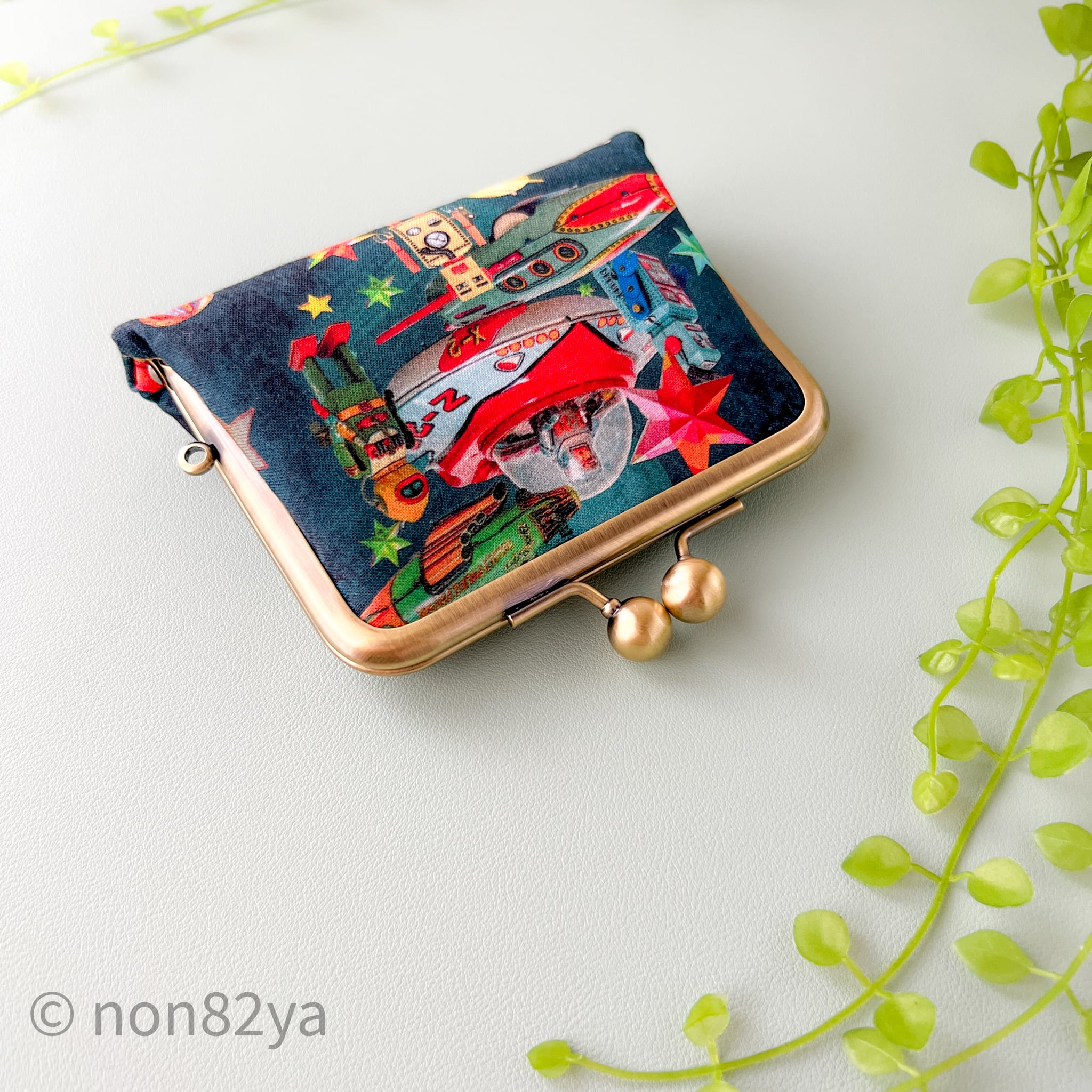 ブリキのおもちゃ達やヒーローたちが集うがま口財布