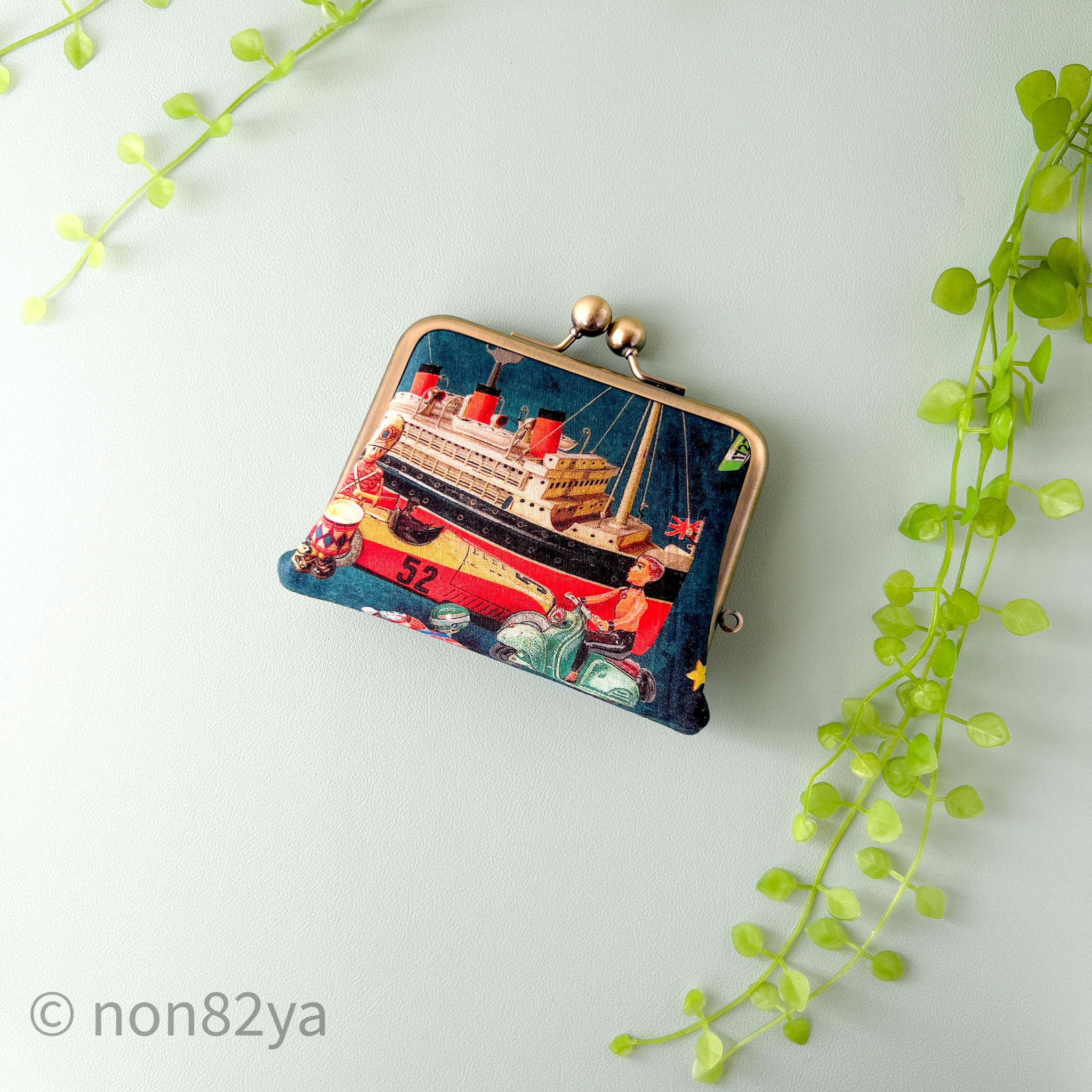 ブリキのおもちゃ達やヒーローたちが集うがま口財布