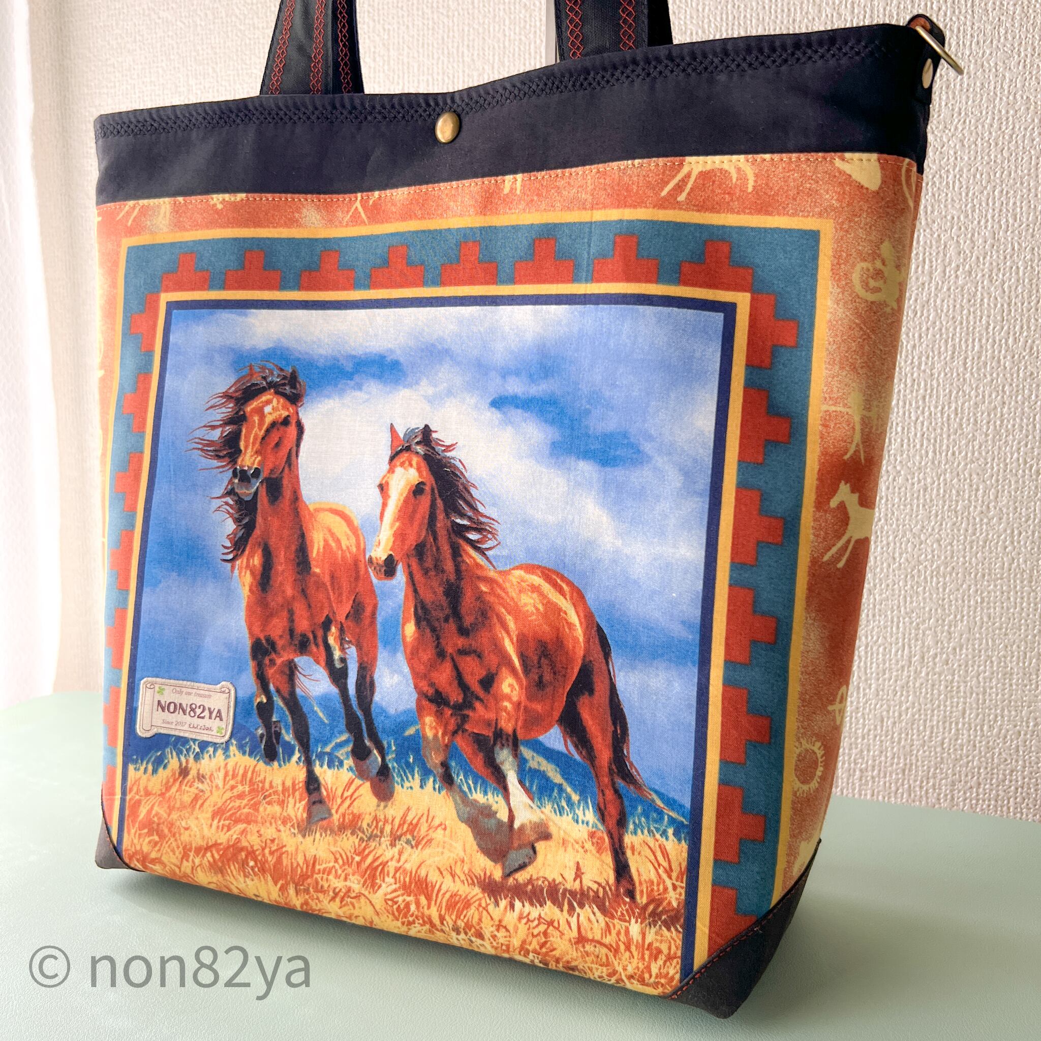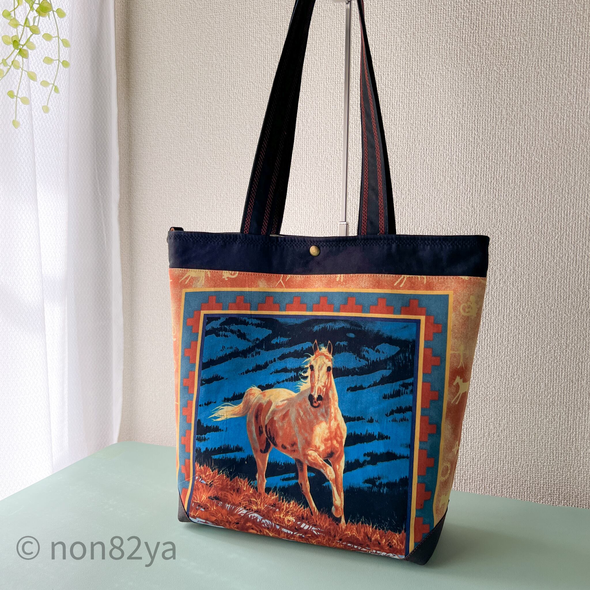 馬のパネル生地で作ったトートバッグです。