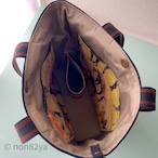 黒生地にパネル生地を貼り付けてから芯などを工夫して付けているので、しっかりしているけど肌あたり良く、ざっくり使えるトートバッグに仕上がりました。