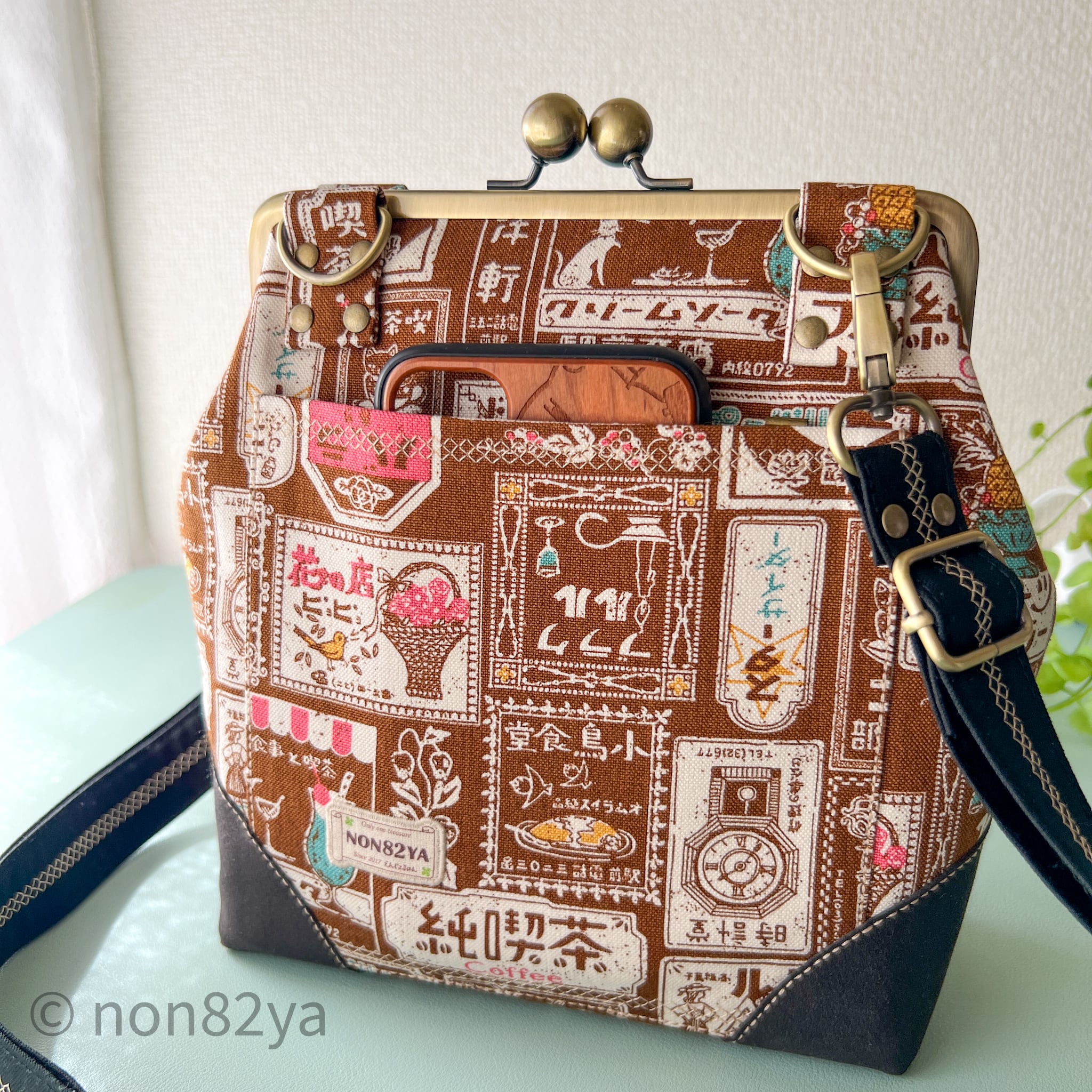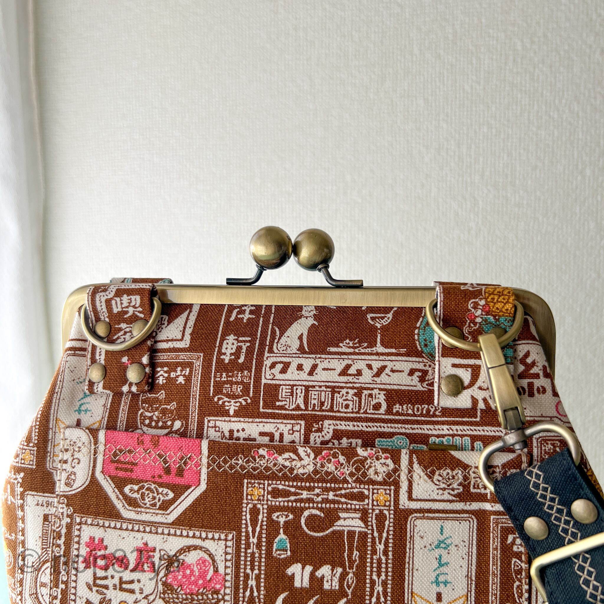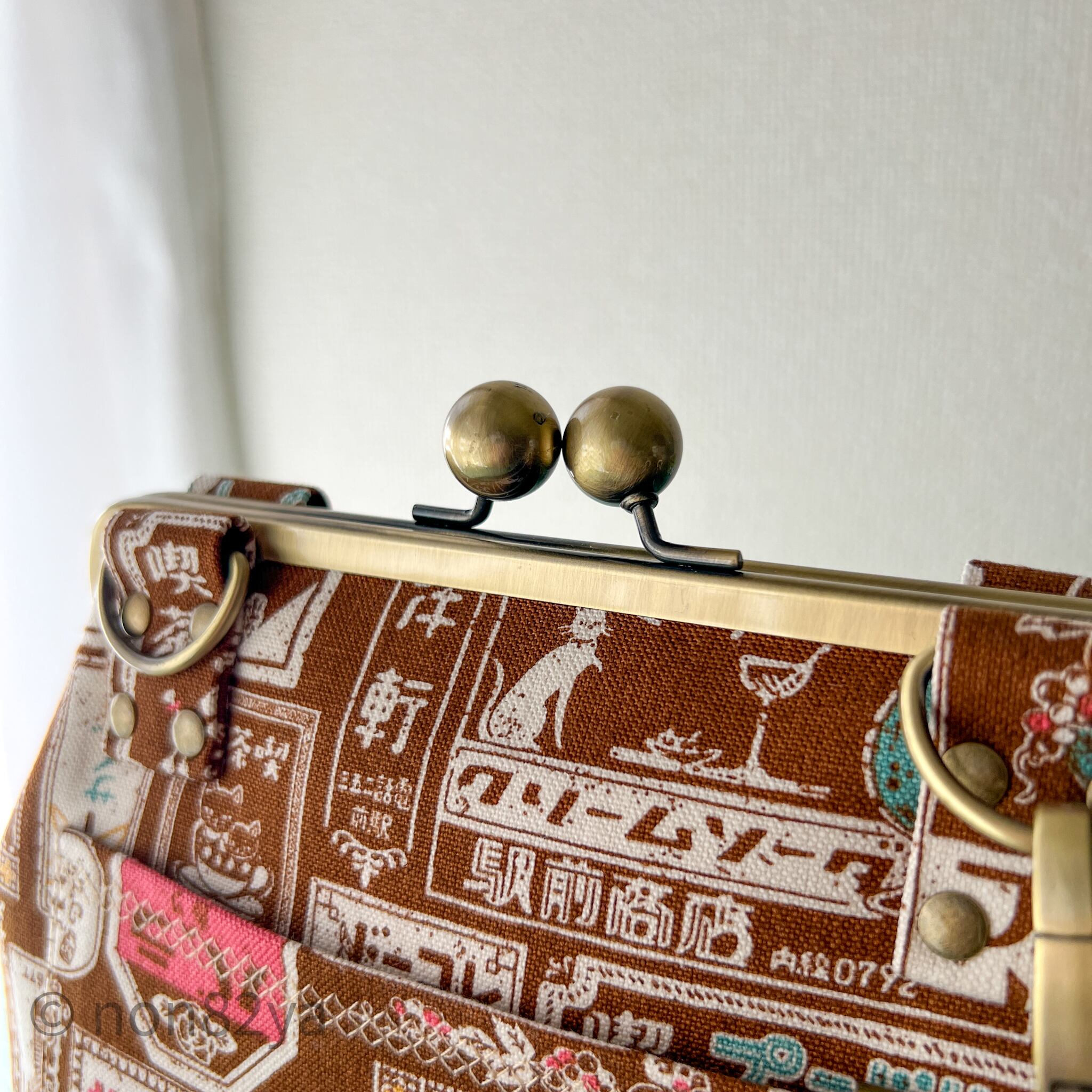 男前がま口バッグ レトロ看板柄 大玉口金