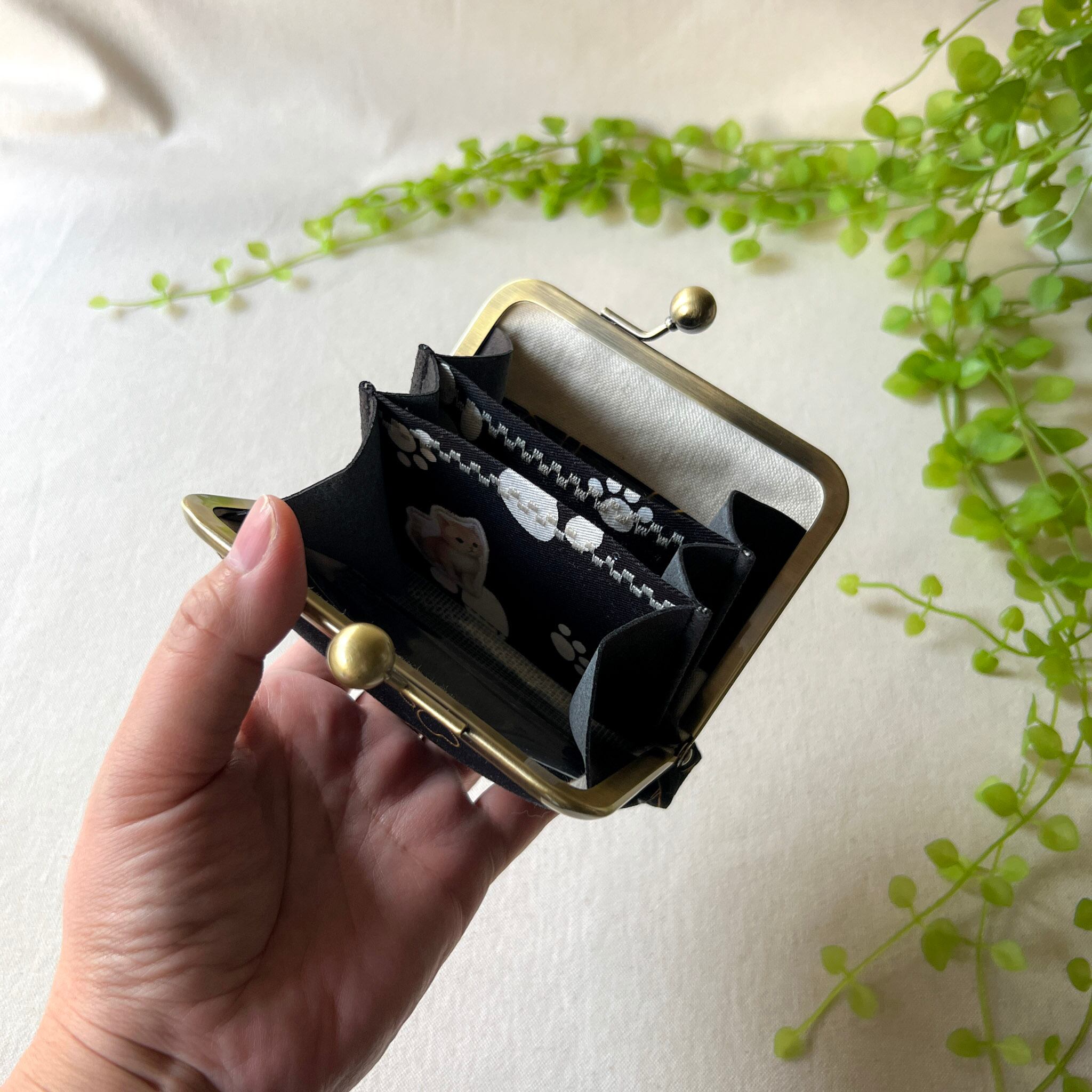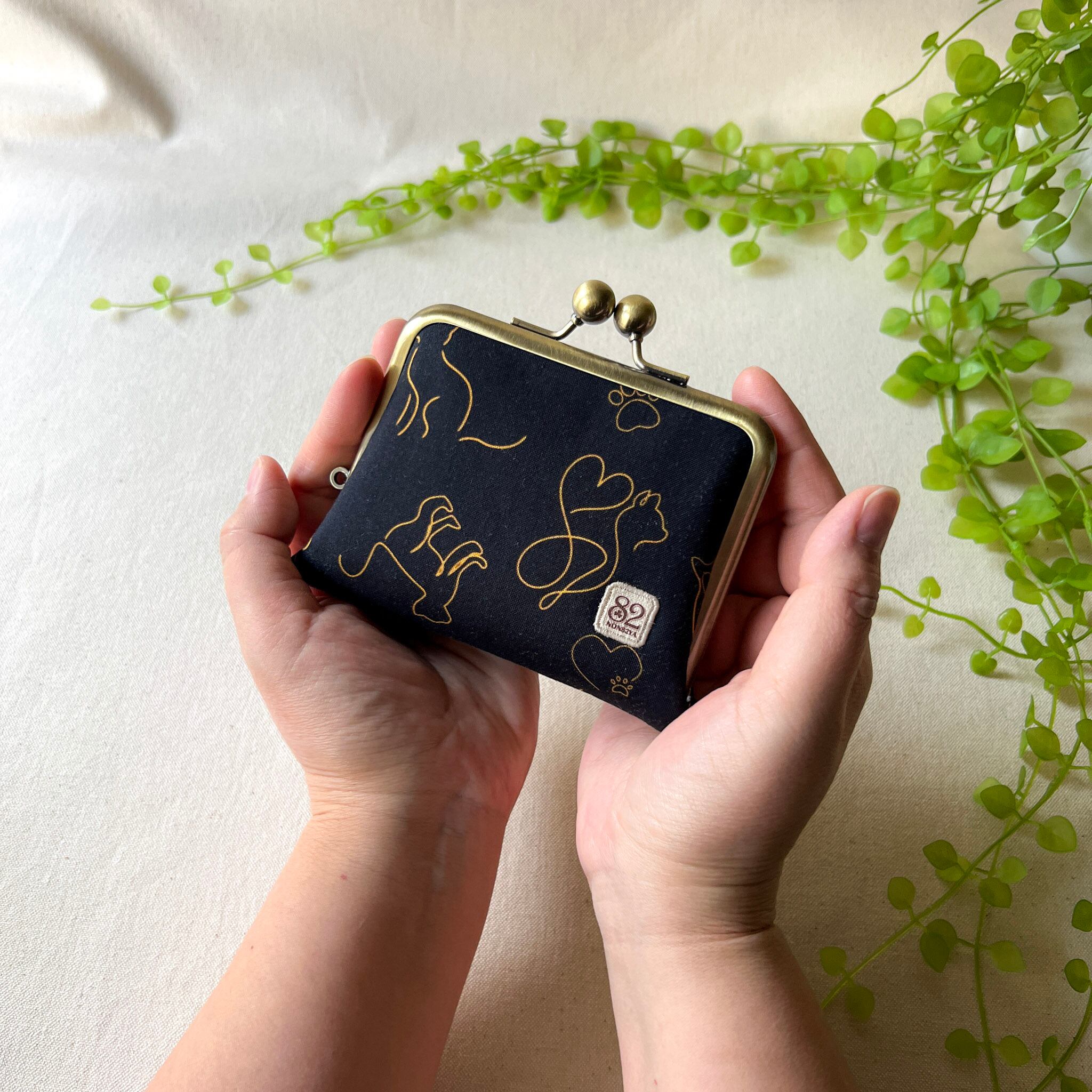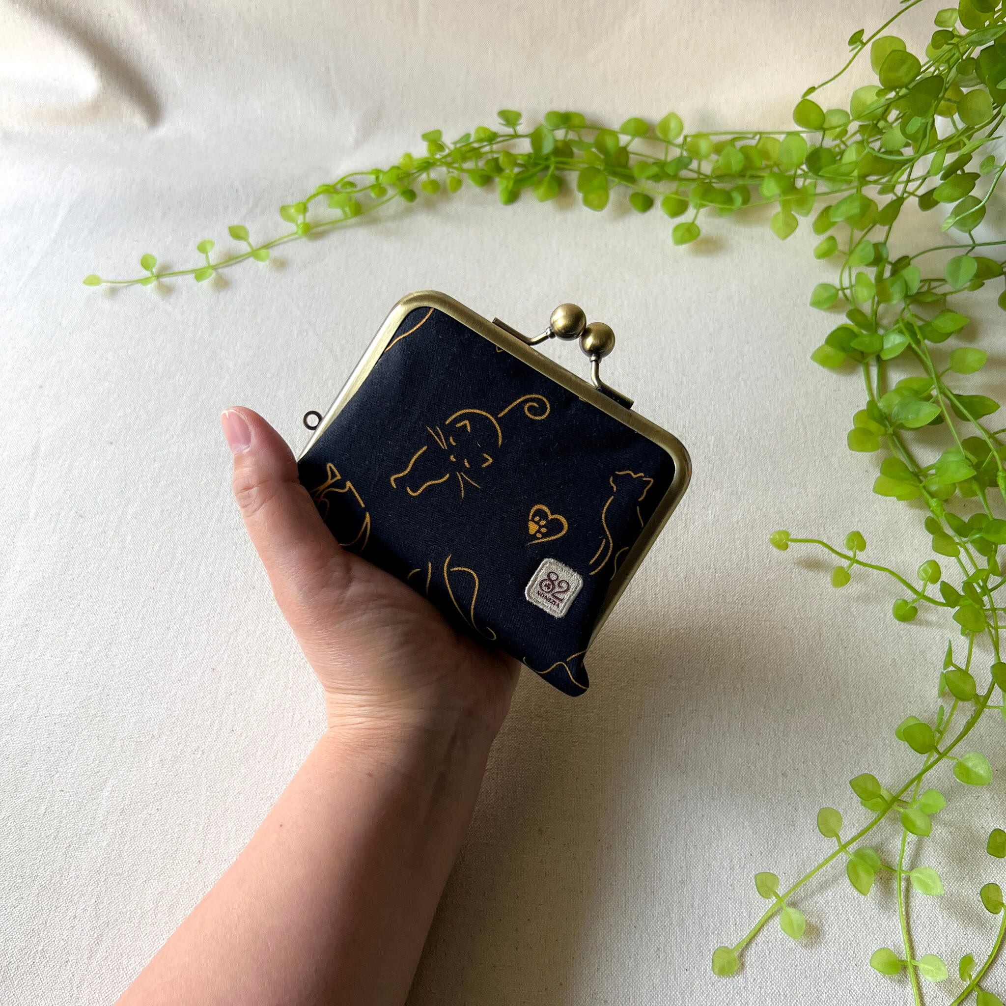 ブラックに浮かぶ猫のシルエットがカッコ可愛いほどよいがま口財布です。