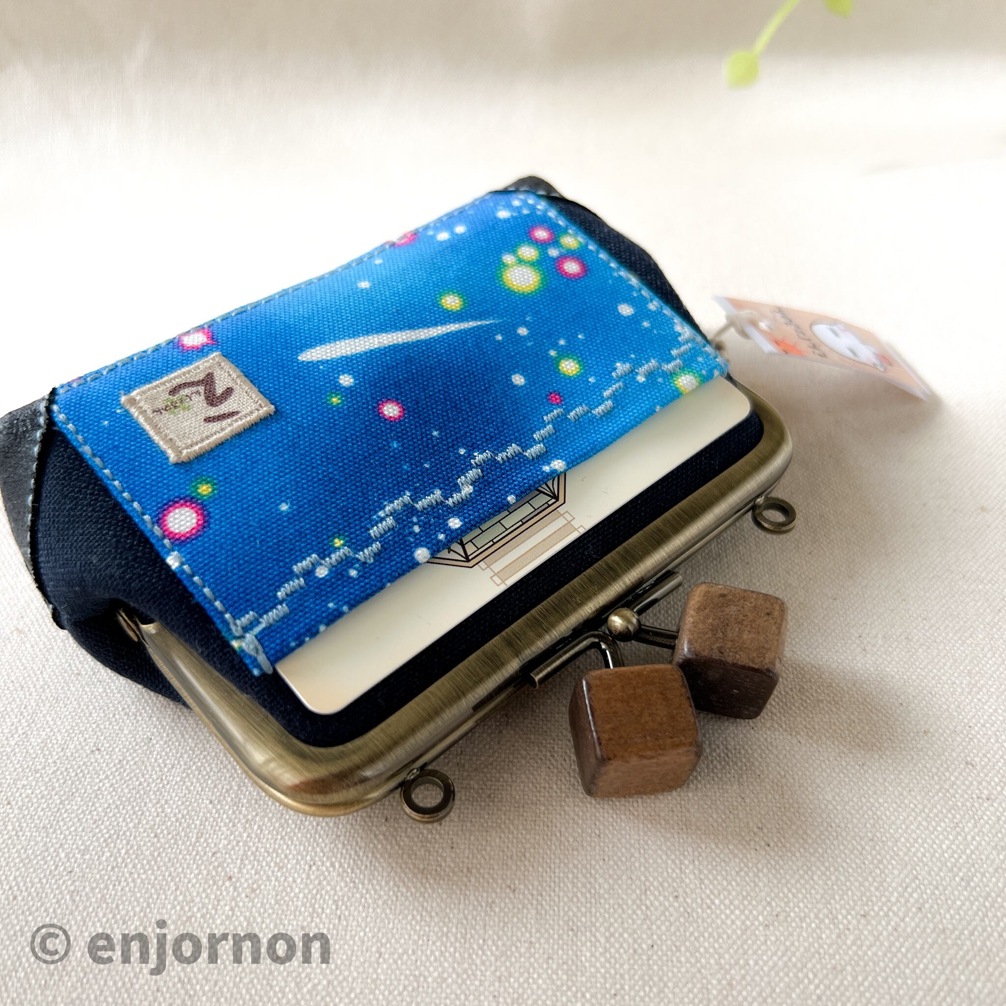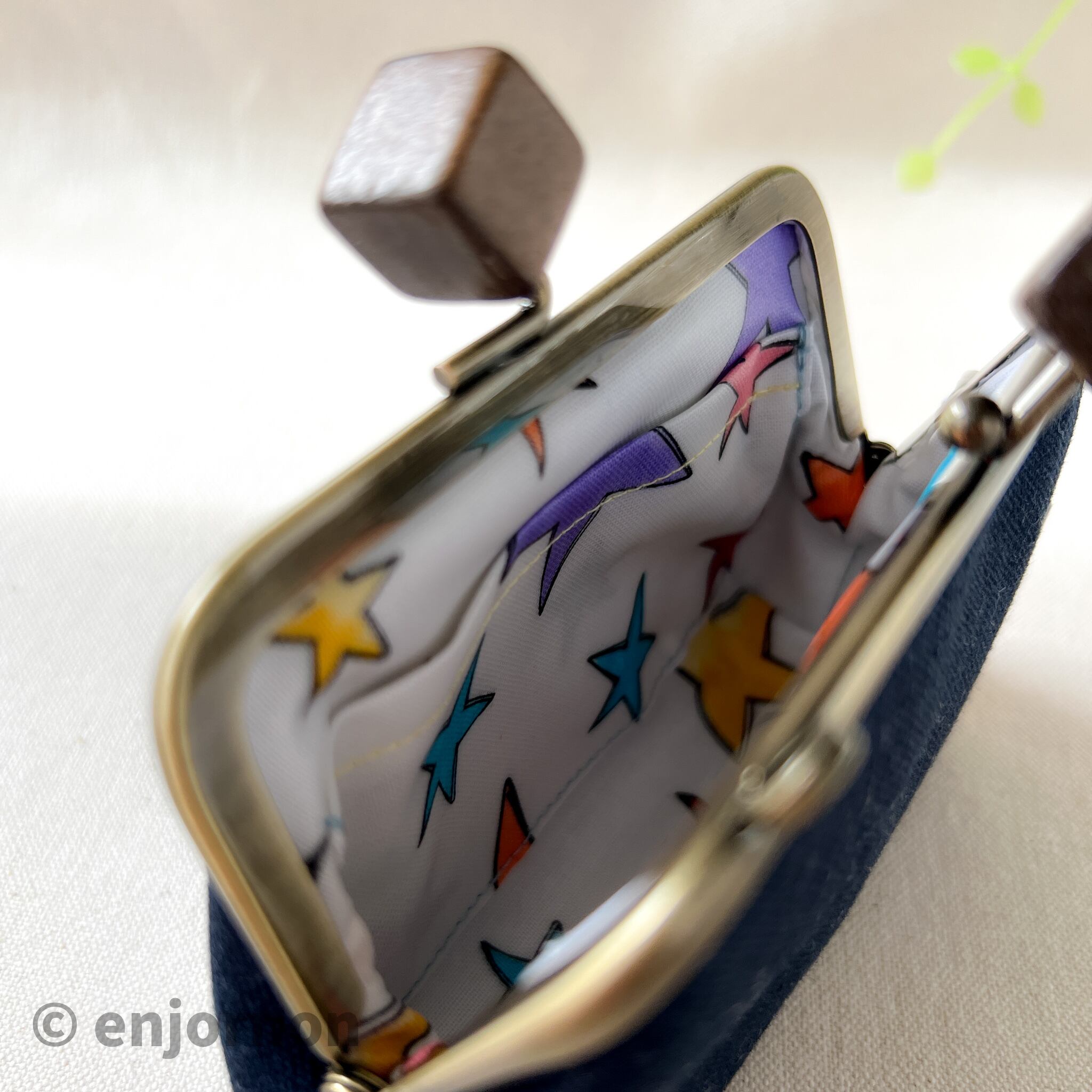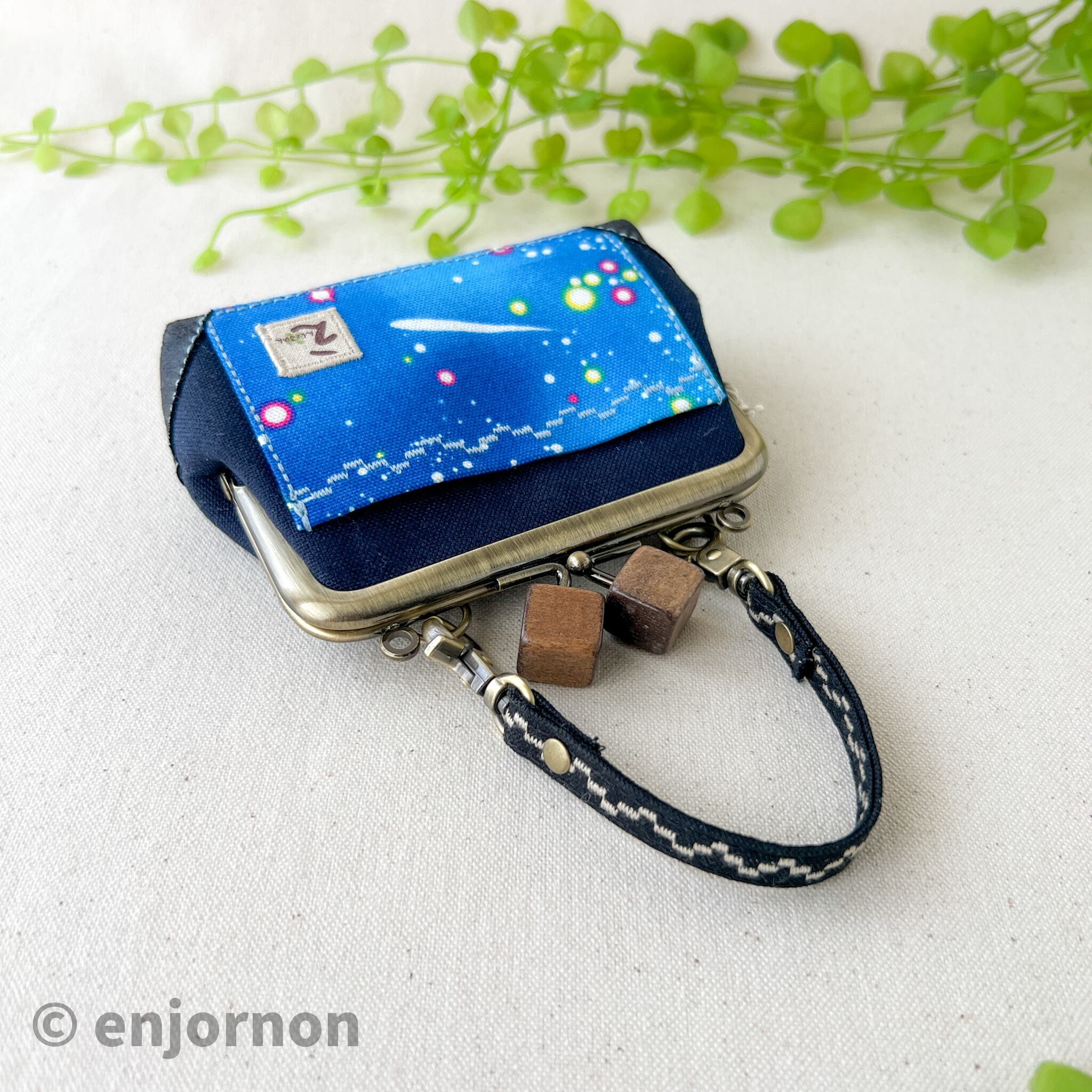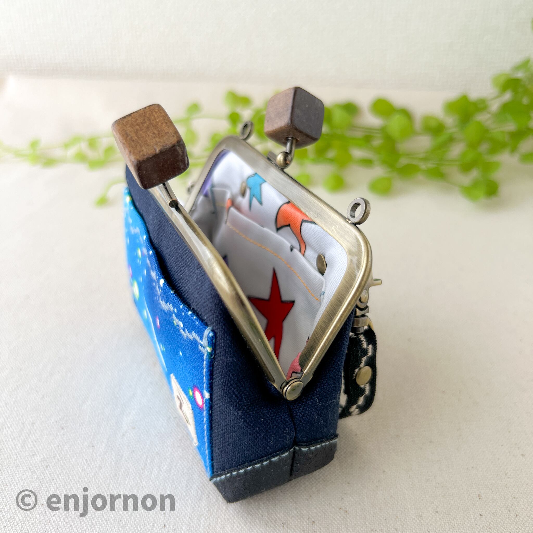 宇宙ながま口ポーチ 木キューブひねり ストラップ付
