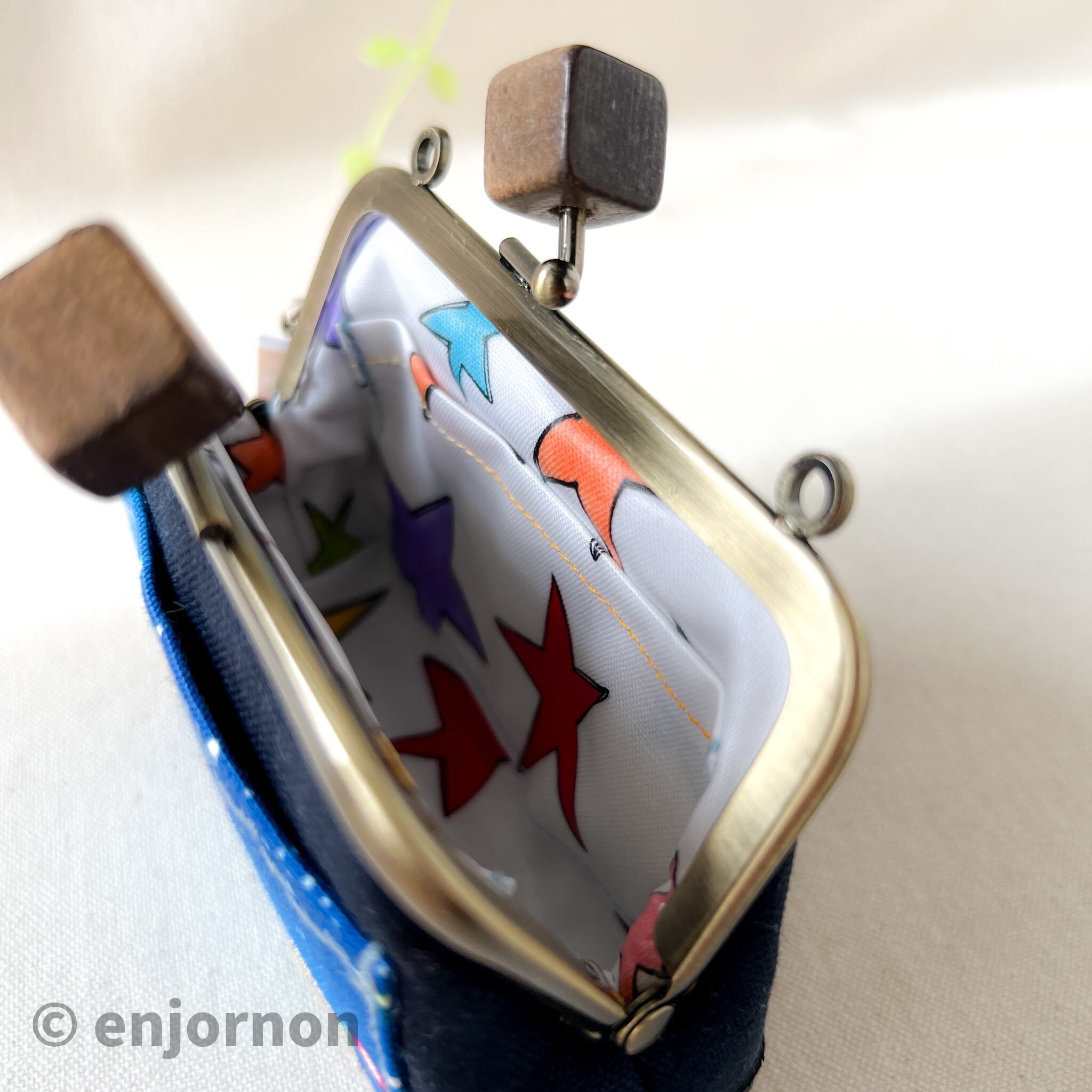 内生地は可愛いラミネートで仕上げているので、お金で汚れても拭き拭き出来ちゃう仕様。